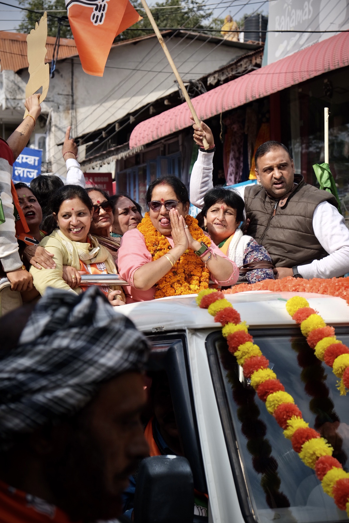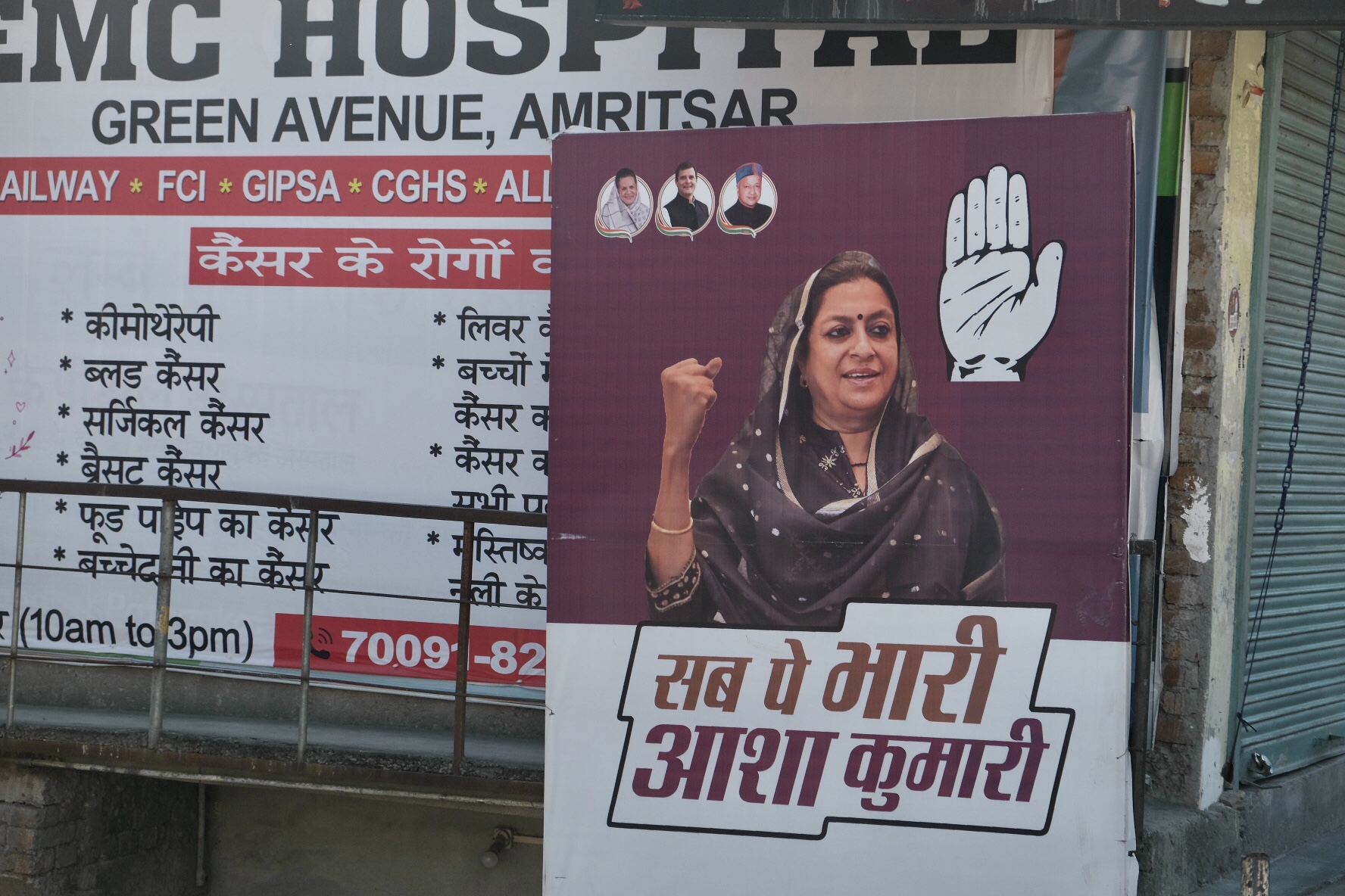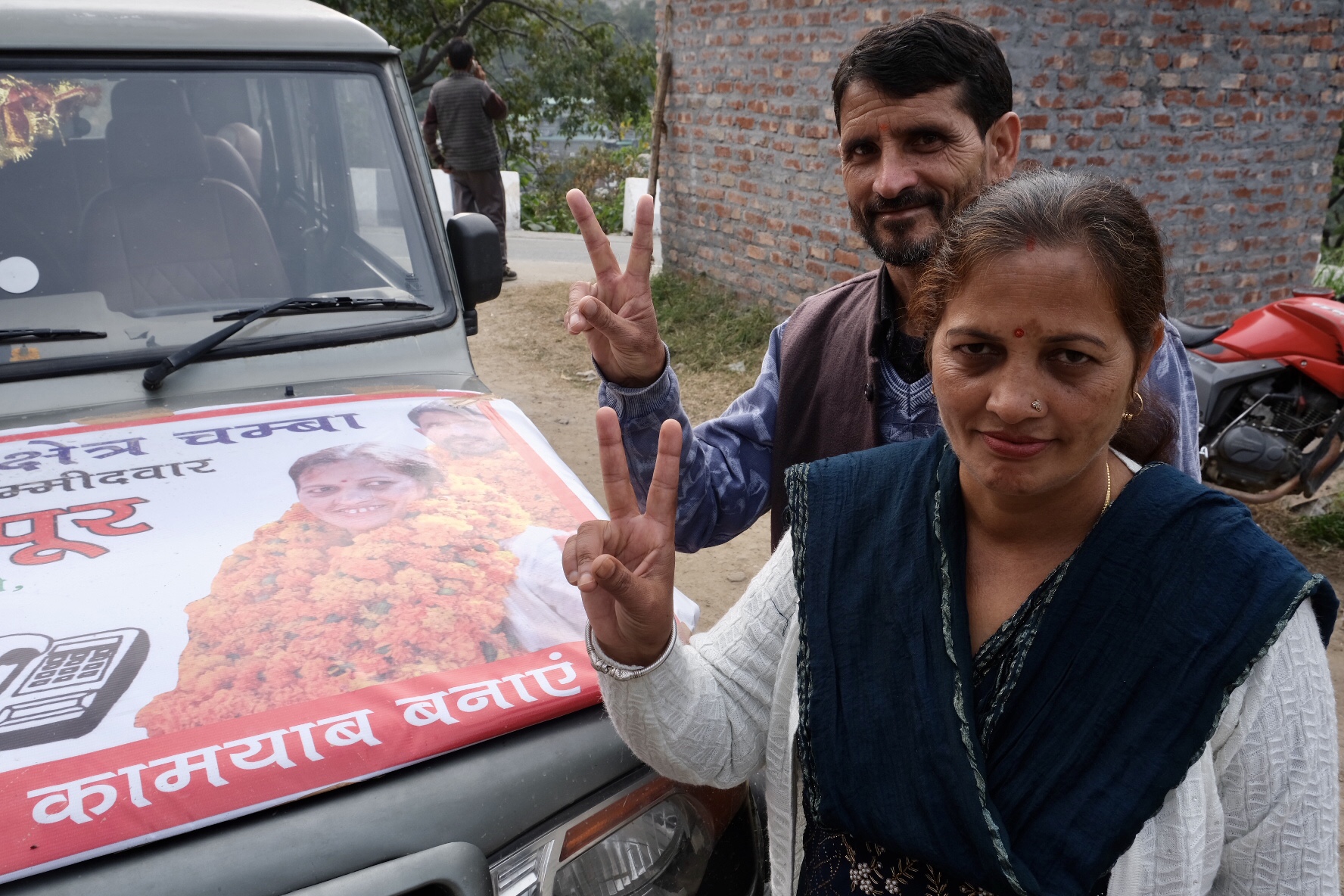 The woman who took Kapoor’s position as BJP MLA candidate, Neelam Nayyar, was fairly open during her campaigning that she was in this position thanks to her husband and also because she had the backing of the senior BJP leadership. Her campaign posters made a fairly obvious statement in this regard. Mrs. Nayyar was a picture of humility with folded hands, flanked by her husband on one side, and the senior leaders of the BJP above her picture on the poster. Unlike the Congress candidate from Chamba Neeraj Nayyar, Neelam had no personal statement whatsoever she had to make regarding her candidature besides parroting the party line. When we asked her why she would like voters to support her candidature, she said that having a BJP government at both the state and the Centre would lead to a “double engine” sarkaar, meaning that there will be better cooperation between the national and state governments leading to a smoother flow of funds for development. She was merely repeating what other BJP leaders had been saying elsewhere. Her husband’s tenure as Chamba MLA had seen a boost in construction of roads and pathways in a hill town ridden with connectivity issues, and Nayyar, who got into politics after cementing his position as a public works contractor had an obvious vested interest in promoting road laying projects. Therefore, his wife too highlighted the need to improve connectivity as a major goal to pursue if she was elected to power. During our interaction with Mrs. Nayyar it was obvious that she was here as a representative of her family, having been initiated into politics by her father-in-law and husband. She cut her teeth in politics as the President of the municipal council in Chamba and said that the job taught her a lot about interacting with the public and resolving their day-to-day issues. Mrs. Nayyar once again demonstrated the advantages of family connections in pursuing a political career.